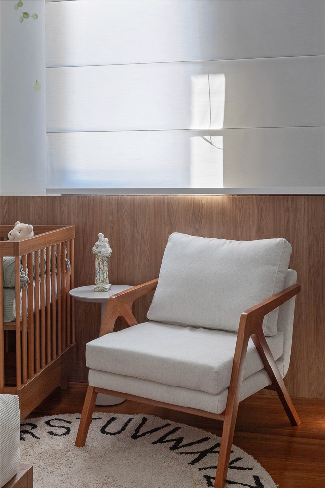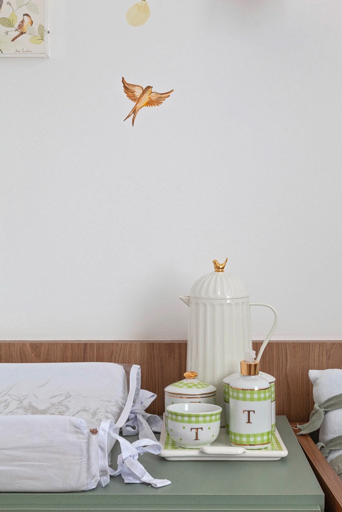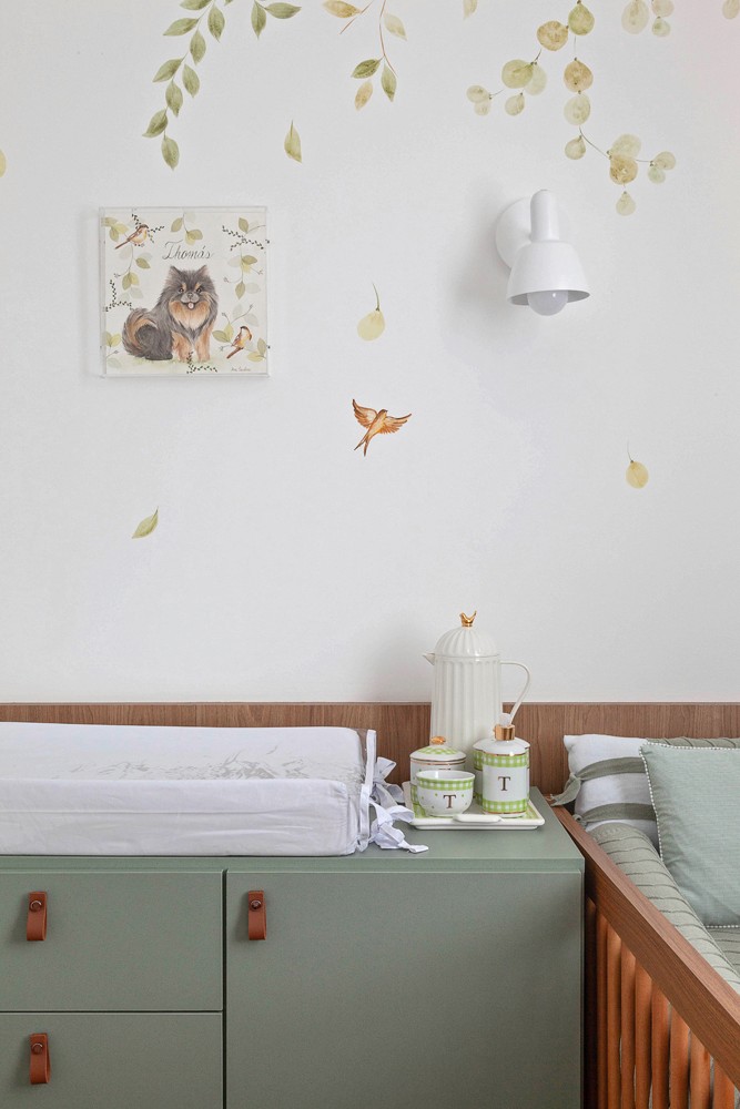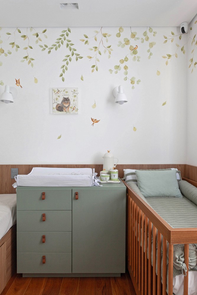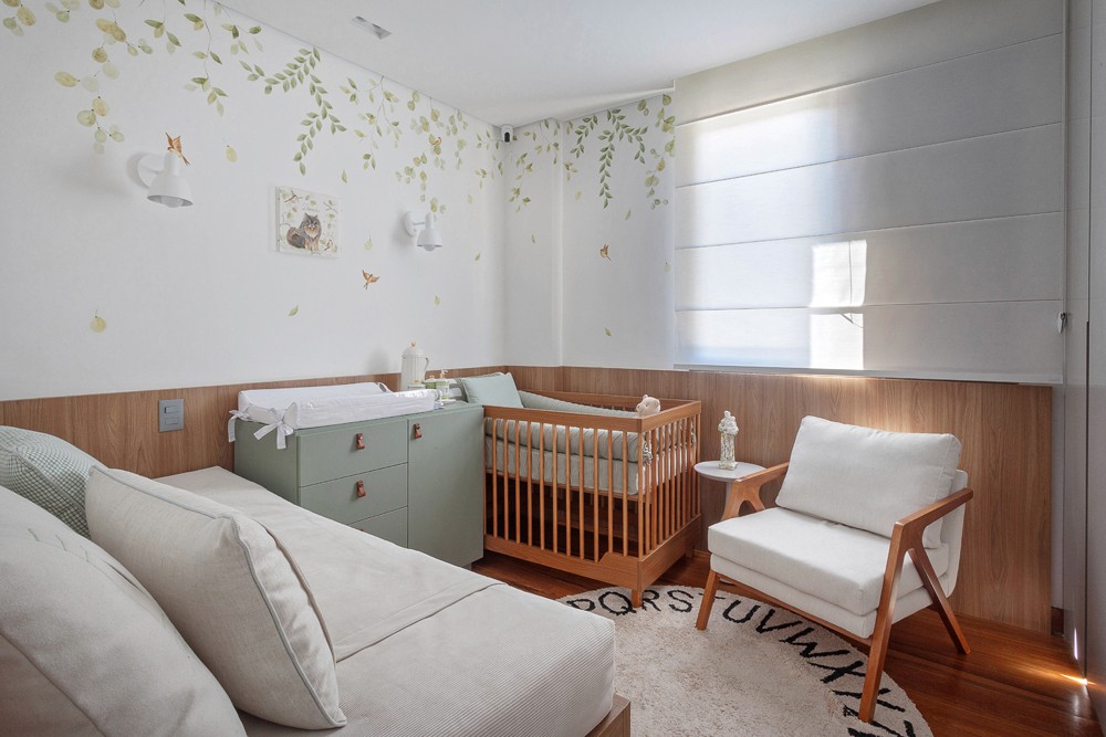 Projeto de quarto de bebê feito antes mesmo de sabermos o gênero do bebê. Neutro e muito aconchegante, o quarto reúne tons de verde claro, com toques em madeira.